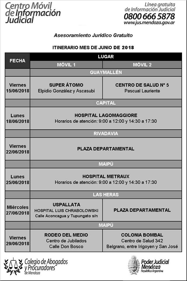 Para más información, adjuntamos cronograma correspondiente a lo que queda del mes de junio: