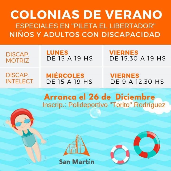 Las inscripciones para niños y adultos con discapacidad, y que quieran ser parte de las Colonias de Verano Especiales en Pileta Libertador, continúan abiertas.