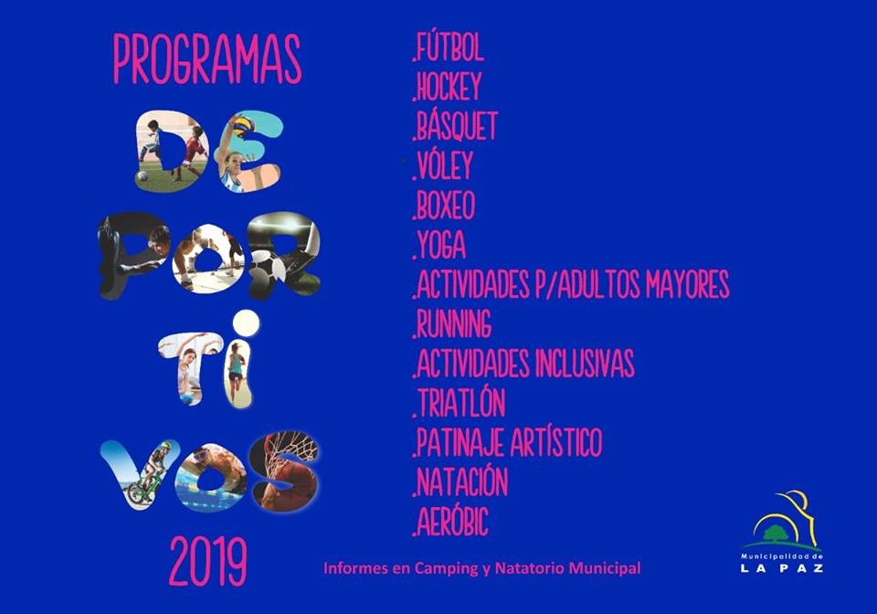 Desde esta semana se encuentran abiertas las inscripciones de los Programas Deportivos Municipales 2019, y de la misma forma que en años anteriores desde el Municipio se ha trabajado arduamente en la ampliación de la oferta de actividades deportivas a las que la comunidad paceña puede acceder en forma totalmente gratuita y con el acompañamiento de Profesores y Personal Idóneo que acompañe a quienes deseen sumarse.