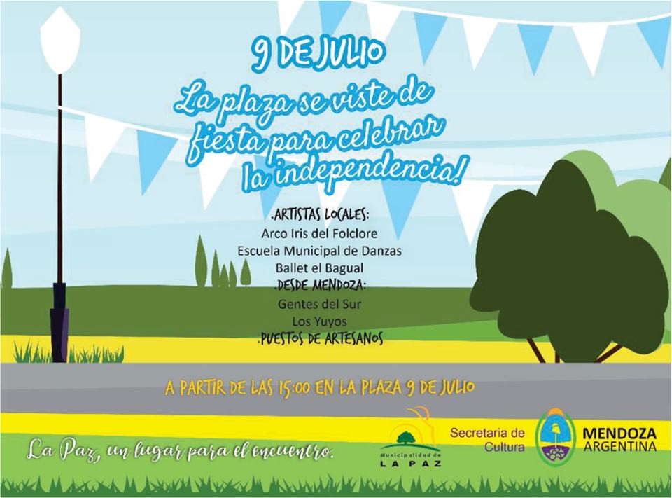 Nuevamente el Municipio con el auspicio de la Secretaría de Cultura de la Provincia ha programado una jornada colmada de actividades con el afan de que los paceños vivan el Día de la Independencia Patria en familia y con amigos mientras recorren los Stands en que nuestros artesanos expondrán sus creaciones y disfrutar de la danza cuando el Grupo de Danzas Arco Iris de Folclore, la Escuela Municipal de Danzas Raíces de Corocorto y el Instituto de Danzas Folclóricas El Bagual muestren todo su arte, sumado a las actuaciones de Artistas Locales y los conjuntos Gente del Sur y Los Yuyos que colmarán el ambiente con la magia que la música tiene implícita.