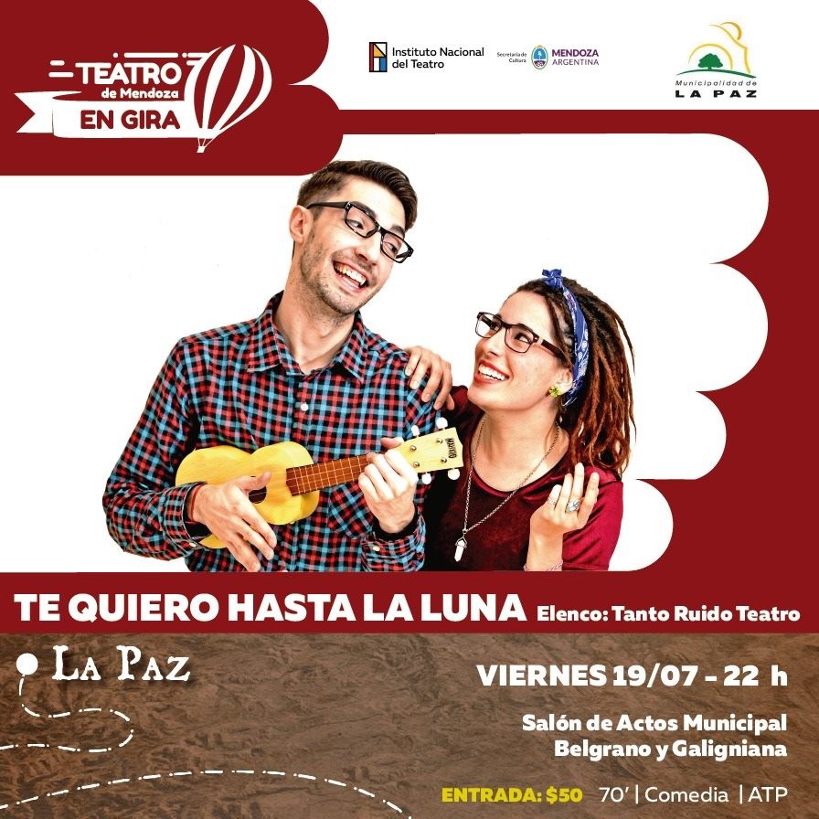 Bajo ese concepto en el salón de Actos Municipal el viernes 19 de julio a partir de las 22:00 hs. el elenco Tanto Ruido Teatro realizará su despegue al espacio exterior con Te quiero hasta la luna. La obra relata el reencuentro de dos personajes en una nave espacial y las peripecias que deberán sortear durante el viaje; una serie de imprevistos que pondrá a prueba el fuerte vínculo que los une.