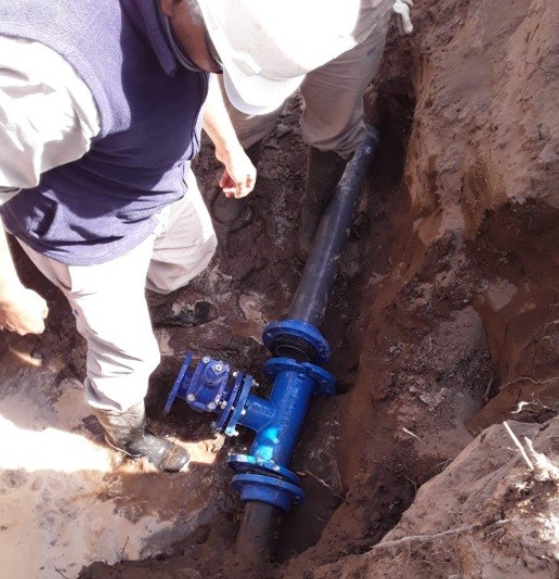 A través de la Subdirección de Agua y Saneamiento, y su responsable Cristian Díaz, se finalizó esta obra de 2400 m de Red de Agua Potable en calle Las Trojas de Los Campamentos, asegurando este servicio vital a cuatro familias de la zona.