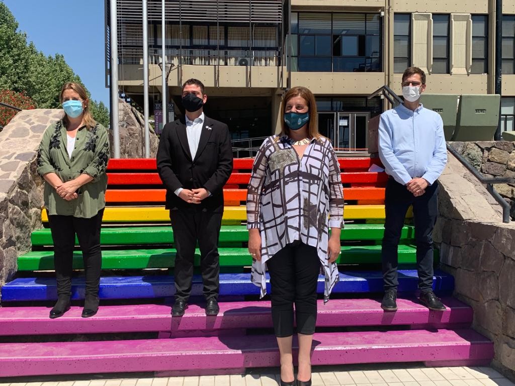 Junto a organizaciones del colectivo LGBTIQ+ realizaron una intervención artística y anunciaron acciones a favor de la igualdad y la inclusión de las personas travestis, transexuales, transgénero y no binarios.