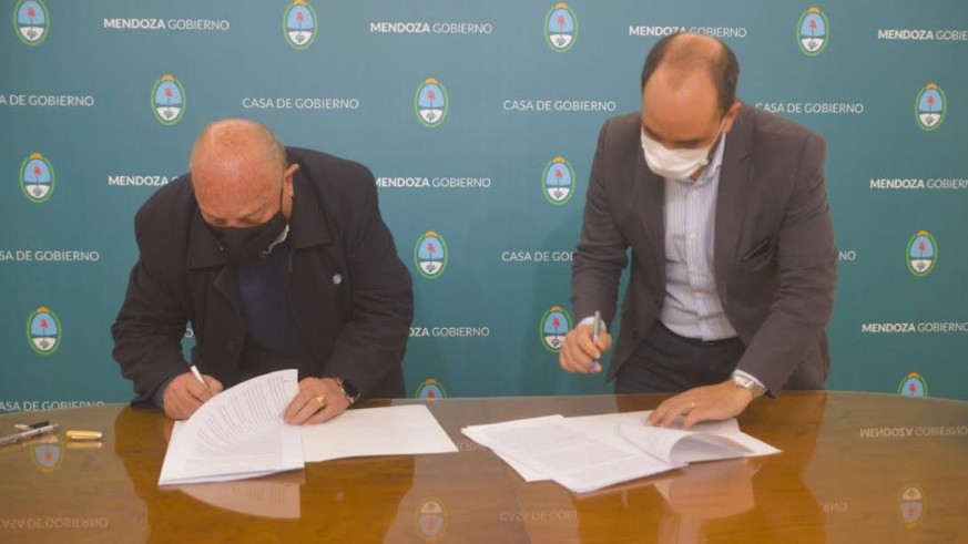El intendente Miguel Ángel Ronco junto al titular de la DGE José Thomas, participaron de la firma del convenio Marco de Cooperación y Complementación Educativa – Centros WiFi, que tiene como objetivo dar un apoyo al proceso educativo afectado por la pandemia del coronavirus.
