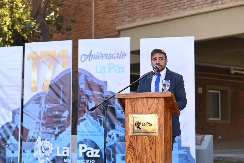 El Intendente, Fernando Ubieta, encabezó el Acto Protocolar por el 171º Aniversario del Departamento de La Paz, que se llevó a cabo hoy en la Explanada Municipal, con la presencia de diferentes autoridades municipales, provinciales y nacionales.