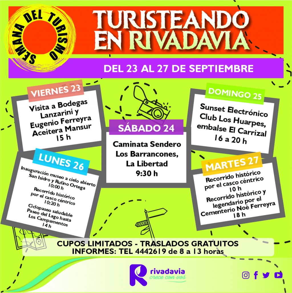 En el marco de la Semana Internacional del Turismo, la Municipalidad de Rivadavia invita a participar del ciclo denominado “Turisteando en Rivadavia”, desde el viernes 23 al martes 27 de septiembre.
