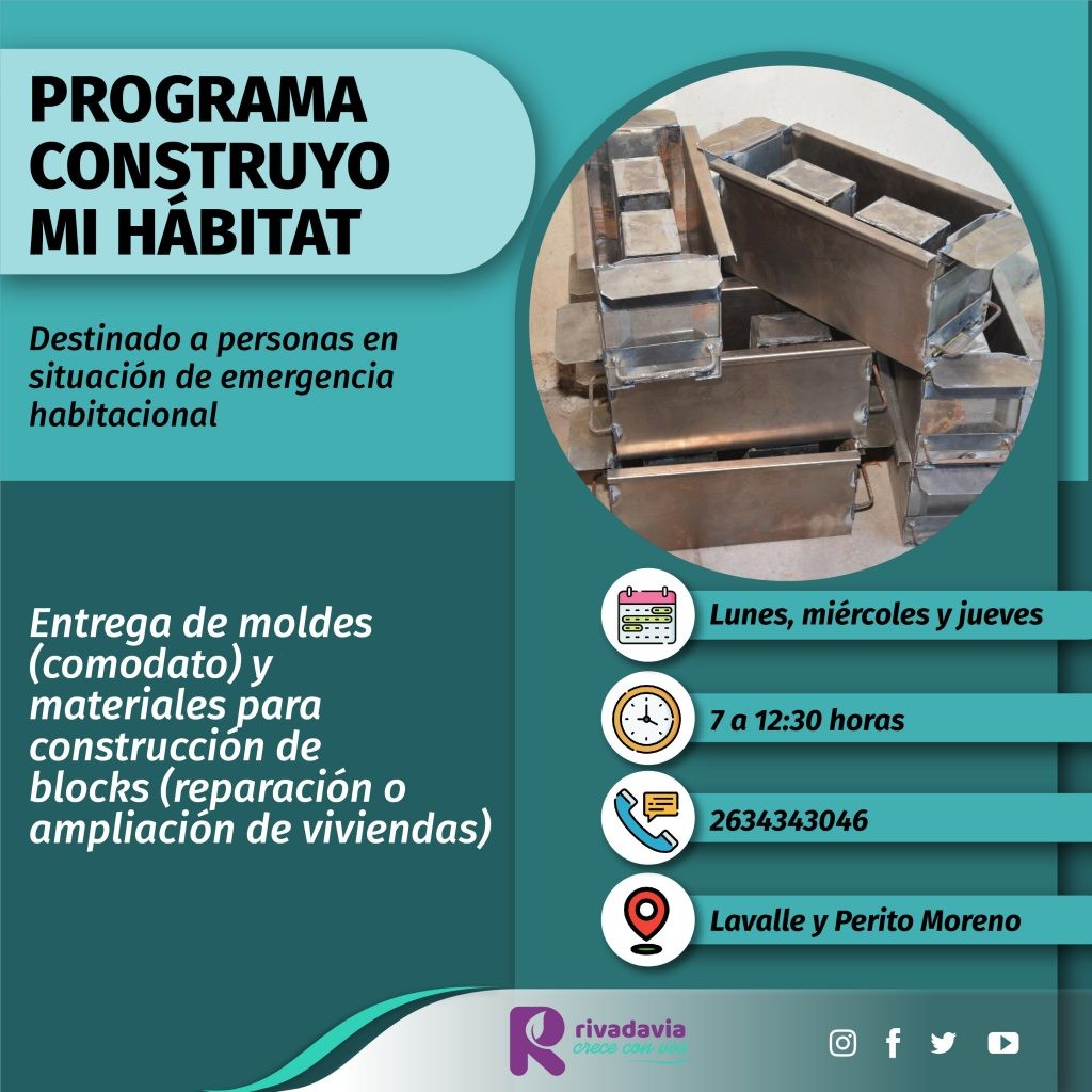 La Municipalidad de Rivadavia continúa con el programa “Construyo Mi Hábitat”, destinado a personas en situación de emergencia habitacional, mediante la entrega de moldes y materiales para la construcción de blocks.