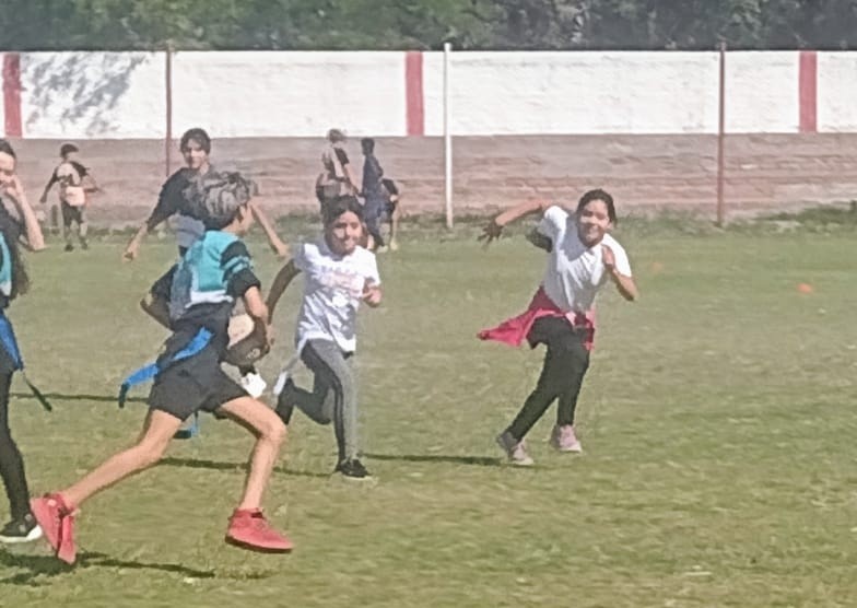 Desde temprano los pequeños/as alumnos/as jugaron VOLEY y el novedoso RUGBY TAG, en las instalaciones del club Eliseo Ortiz, acompañados por sus maestras, padres, profesores/as del Área de Ed. Física, Directivos, con la presencia de la Inspectora Andrea Giudice y de Carlos Jose del Club Rivadavia RC.