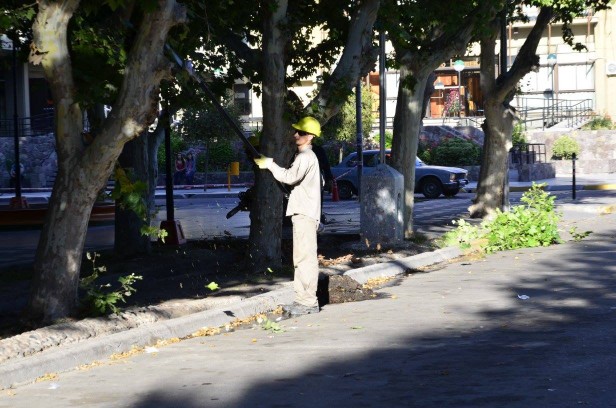 Tareas de desbrote y limpieza en la plaza Bernardino Rivadavia