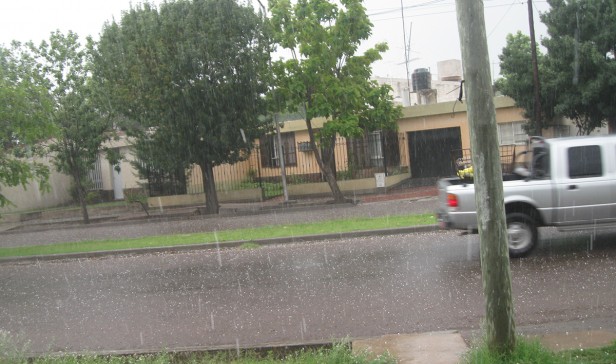Una breve precipitación de granizo alertó a los vecinos de San Martín a las 11.24 por un lapso menor a un minuto luego de que durante toda la noche, en las primeras horas del domingo 24, se produjeran intensas lluvias con una gran actividad eléctrica.