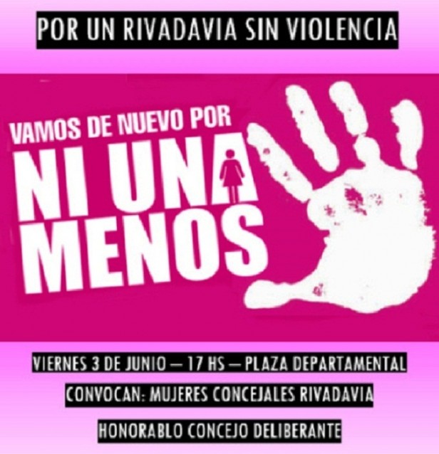 En la sala de sesiones “Bandera Nacional “del Honorable Concejo Deliberante de Rivadavia mediante una conferencia de prensa, se anunció la marcha “NI UNA MENOS” del próximo el próximo viernes 3 de Junio a las 17 horas desde Plaza Seca Dr. Raúl Alfonsín.