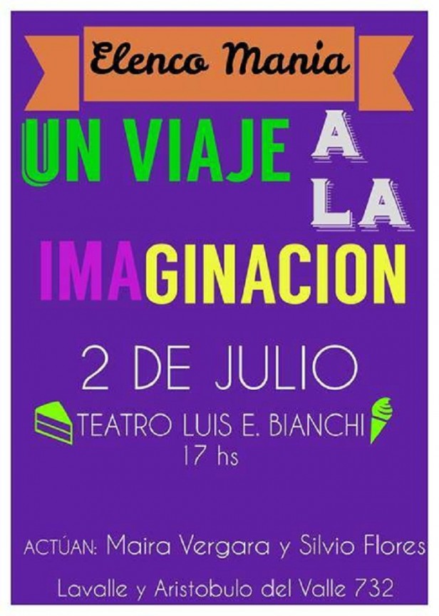 El próximo 2 de julio a las 17hs en el teatro Luis Encio Bianchi de Rivadavia, Elenco Manía presentará”Un Viaje a la Imaginación”.