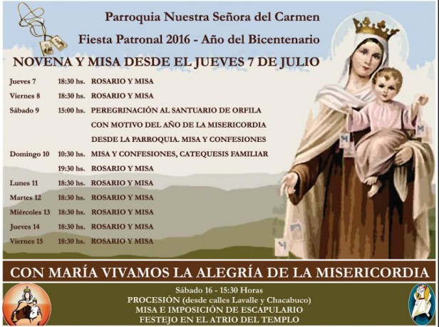 La Parroquia Nuestra Señora del Carmen de Gral. San Martín ha programado una importante serie de actividades para celebrar una nueva Fiesta Patronal.