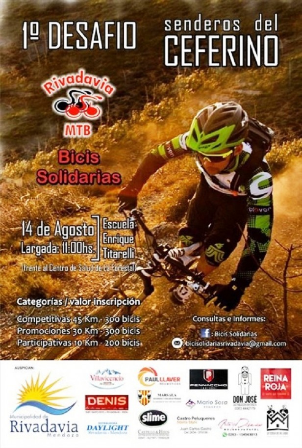 El próximo 14 de agosto desde las 11.00 horas en la Escuela “Enrique Titarelli” (frente al centro de salud de la Forestal), se disputa la carrera de mountain bike con fin totalmente solidario denominada “Bicis Solidarias”.
