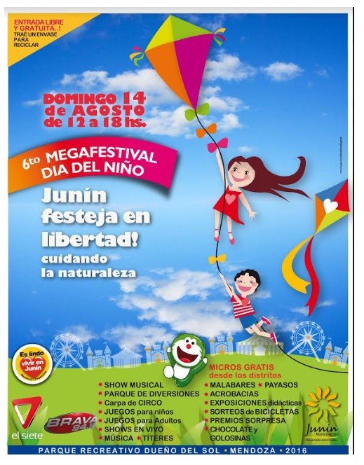 El próximo domingo 14 de agosto, desde las 12, el Parque Recreativo Dueño del Sol volverá a vestirse de fiesta para recibir a los más chiquitos en su día. Organizado por la Municipalidad de Junín, se realizará el VI Megafestival Día del Niño, bajo el lema Junín festeja en libertad, cuidando la naturaleza.