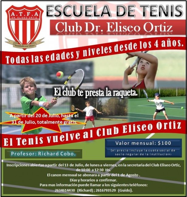 Pasaron varias Comisiones con diferentes realidades, pero la actual dijo que sí al Tenis, al que se sumó el Prof. Ricardo Cobo, “el Richard” contará con el asesoramiento del experimentado Lic. Hernán Schillachi, del Rivadavia Tenis Club … así comienza la nueva era del Tenis, que promete quedarse para siempre.