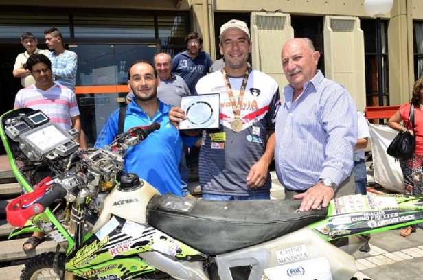 En la oportunidad el intendente hizo entrega de una placa, que simboliza el reconocimiento a este rivadaviense por el logro de concluir la prueba más extrema del automovilismo mundial.